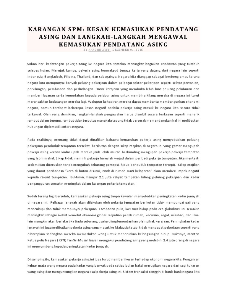 Bm Karangan Kesan Pendatang Asing Kedatangan Pendatang Asing Telah Membawa Pelbagai Kesan Kepada Studocu